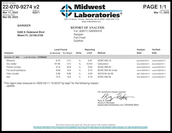 3oz Goldfish Food for Advanced Breeders Only. Complete Goldfish Gel Diet for Both Juveniles & Adults. Proudly Made in The USA Using Premium Ingredients, Nutrition Gourmet Formula. Enjoy !