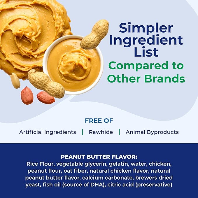 About This Available in puppy-favorite Peanut Butter flavor for the first time! Made in the USA 100% Rawhide free Added... Read more