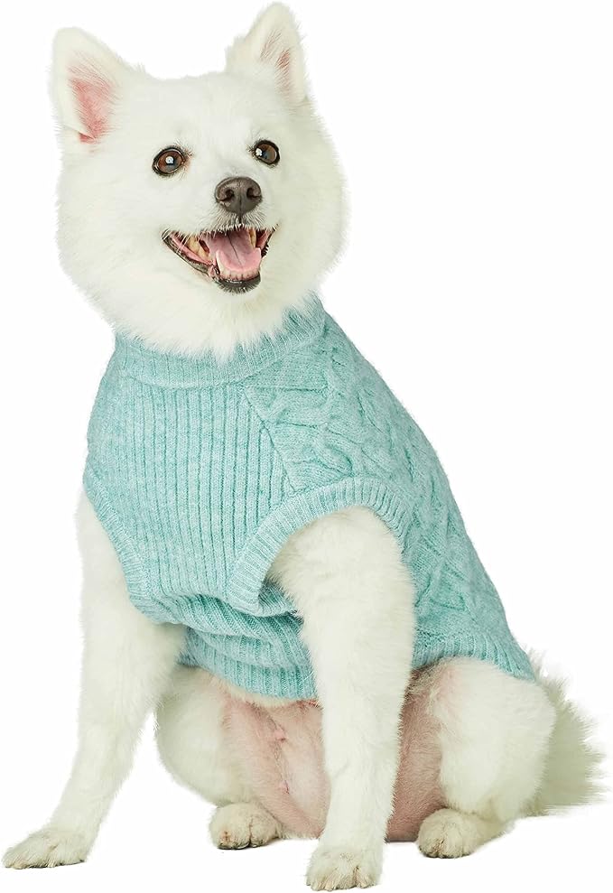 Blueberry Pet 2023 New Classic Fuzzy Textured Knit Pullover Crew-Neck Dog Sweater in Heathered Jade, Back Length 22", Pack of 1 Clothes for Dogs