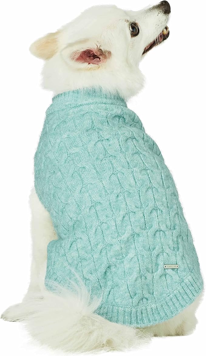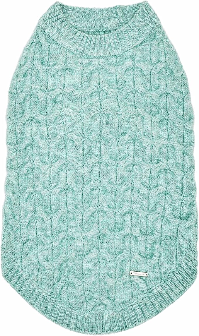 Blueberry Pet 2023 New Classic Fuzzy Textured Knit Pullover Crew-Neck Dog Sweater in Heathered Jade, Back Length 18", Pack of 1 Clothes for Dogs