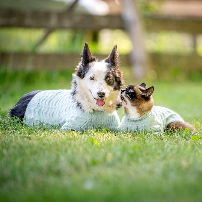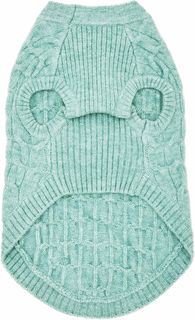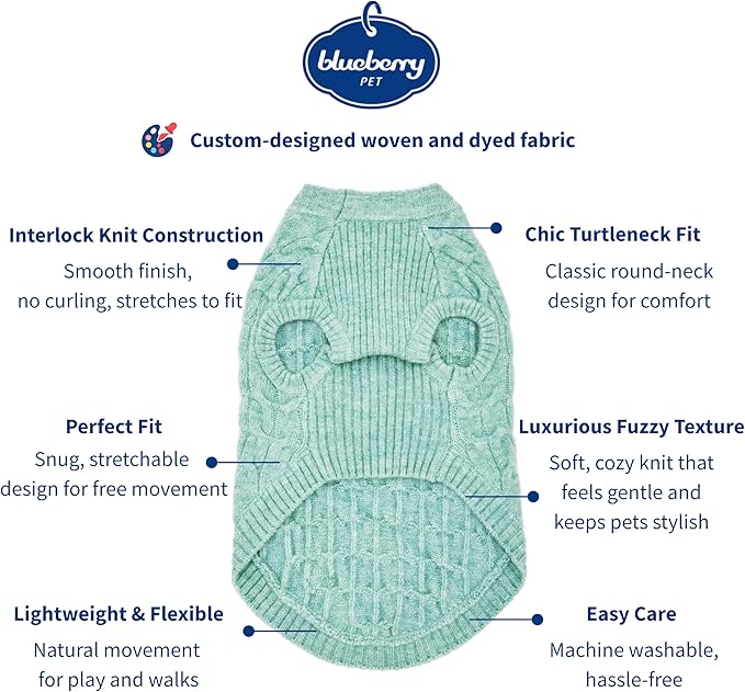 Blueberry Pet 2023 New Classic Fuzzy Textured Knit Pullover Crew-Neck Dog Sweater in Heathered Jade, Back Length 14", Pack of 1 Clothes for Dogs