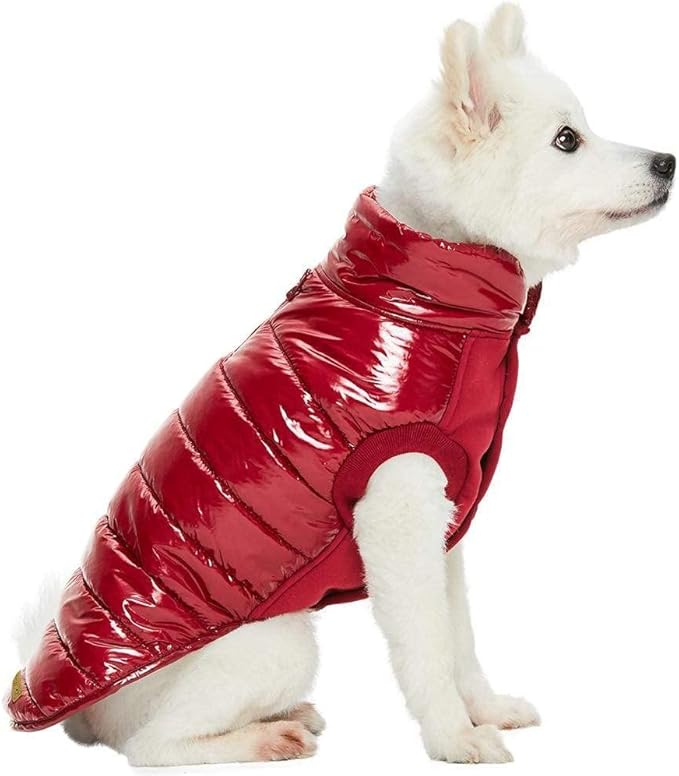 Blueberry Pet Cozy & Comfy Windproof Lightweight Quilted Fall Winter Glossy Dog Puffer Jacket in Deep Rouge, Back Length 24", Size 22, Warm Coat for Large Dogs