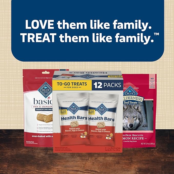 - Contains Twelve (12) oz bags of Blue Buffalo Health Bars Natural Crunchy Dog Treats TO-GO, Mini Biscuits, Bacon, Egg & Cheese