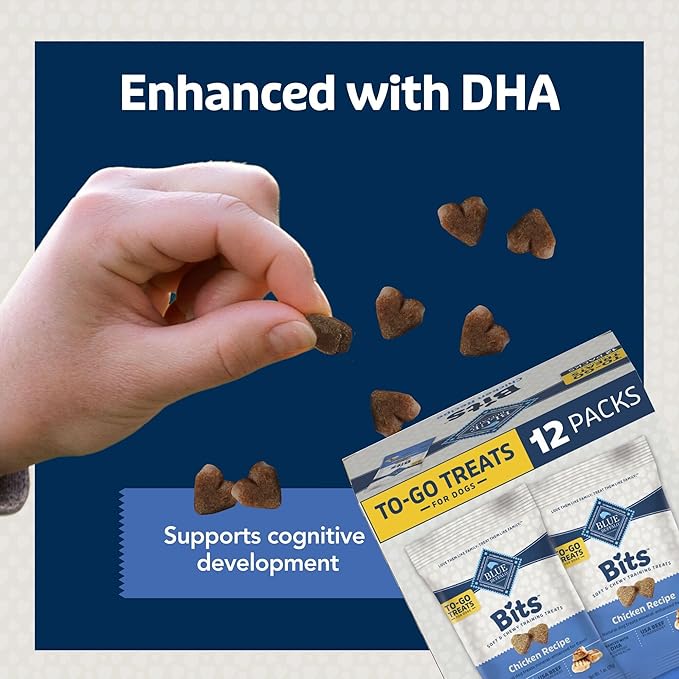 - MEATY TRAINING TREATS: For dogs that love a meaty treat, BLUE Bits are tender, bite-sized morsels that are the perfect size for training; plus with DHA to help support cognitive development, they’re an ideal puppy treat