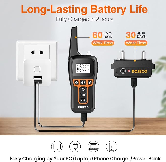 ROJECO Dog Shock Collar for 2 Dogs with 3300FT Remote,IPX7 Waterproof Rechargeable Shock Collar for Large Medium Small 2 Dogs for 4 to 120 lbs,3 Safe Training Modes with Beep,Vibration and Shock