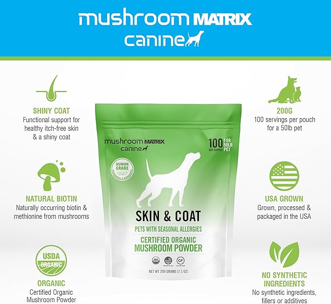 About This Mushroom Matrix Canine Organic Mushroom Powder Skin & Coat Supplement for Dogs & Cats: Contains 100 day supply... Read more