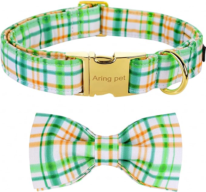 ARING PET Bowtie Dog Collar, Adorable Green Grid Dog Collars with Detachable Bow, Adjustable Collar Gifts for Small Medium Large and Girl Boy Dogs