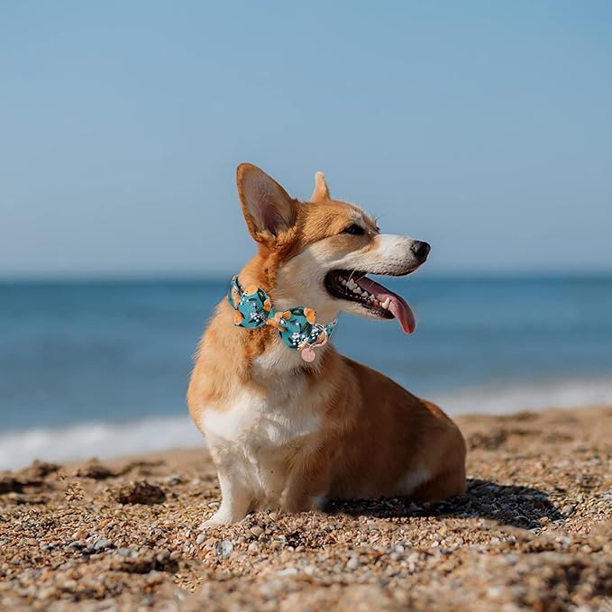 Dog Collar with Bow Tie, Durable Comfortable Cotton Dog Bowtie Collar with Metal Buckle for Small Dog Girl Boy, Summer Cute Dog Collar, S
