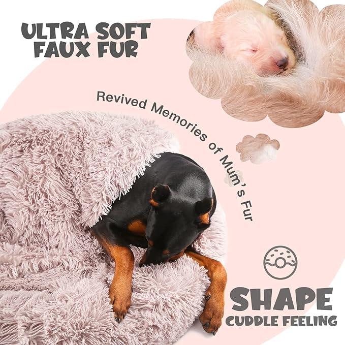 Himax Dog Beds for Large Dogs, Donut Dogs Beds with Blanket Attached, Calming Dog Bed Washable (20"/26"/35") Beige