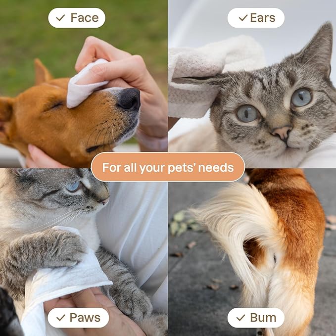 - SUSTAINABLE PET CARE: These vegan wipes are dermatologically tested, packaged in recyclable material, and suitable for all pets, including dogs and cats. Use them as pet ear wipes, or wipes for cats.