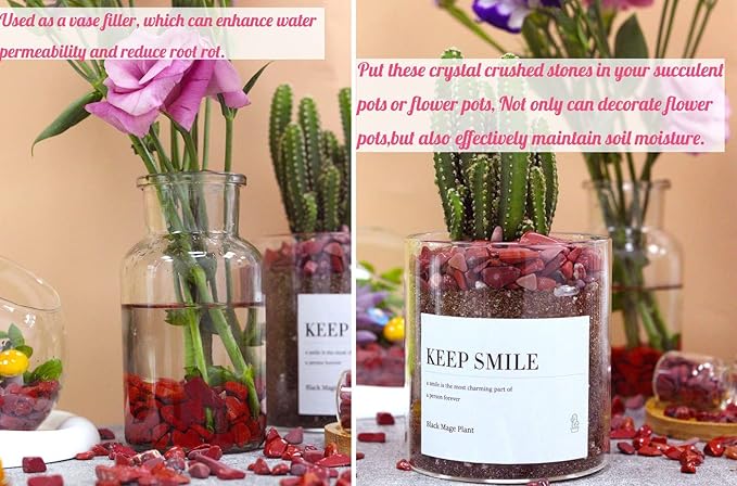 Red Jasper Aquarium Gravel Rocks Natural Tumbled Healing Crystal Chips Bulk Gemstones Tumbled Crushed Stones for Fountain Vase Filler Planters Decorative Fish Tank Potted Reiki Energy Balancing 0.44lb
