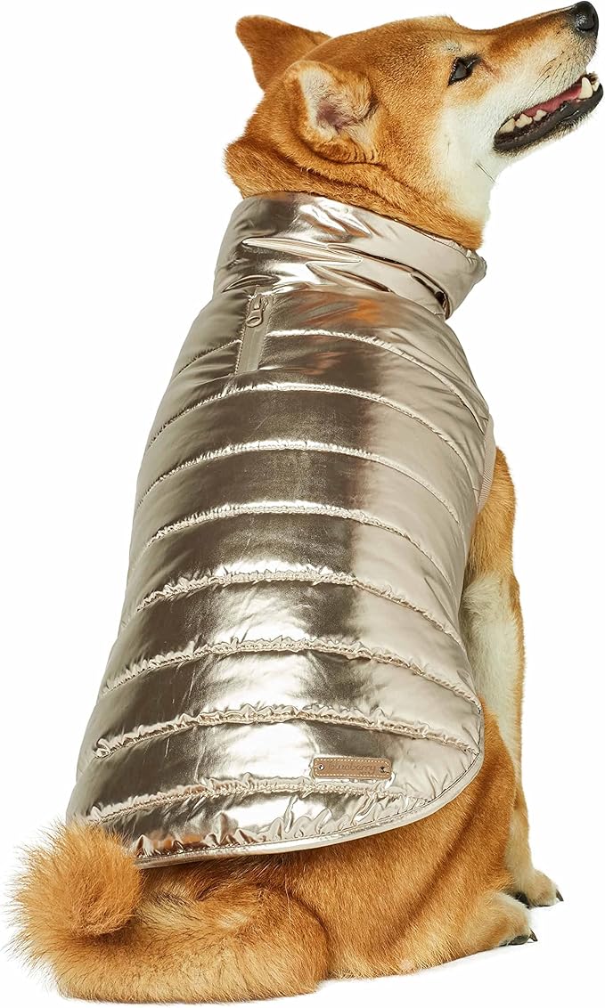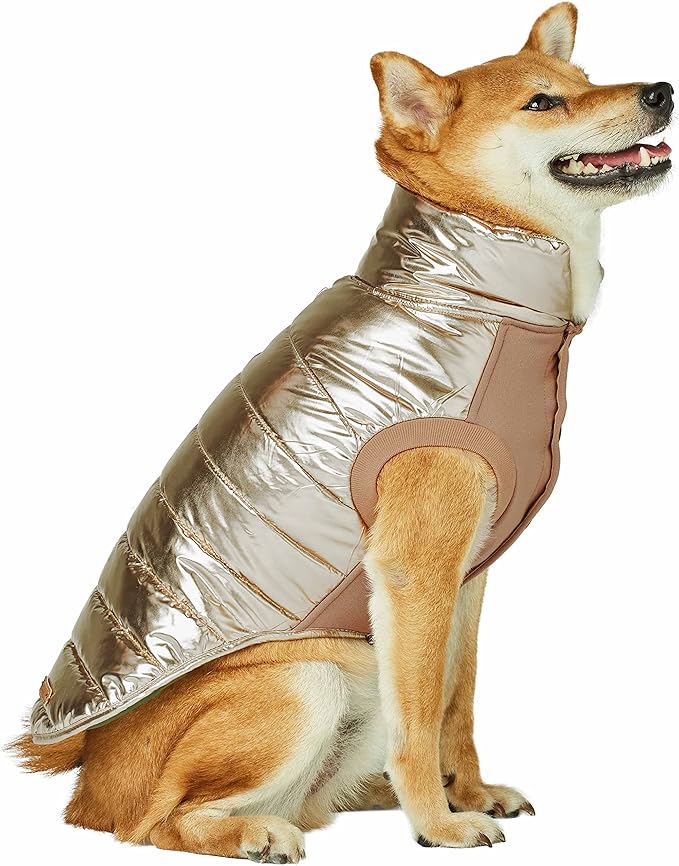 Blueberry Pet Cozy & Comfy Windproof Lightweight Quilted Fall Winter Glossy Dog Puffer Jacket in Gold, Back Length 24", Size 22, Warm Coat for Large Dogs