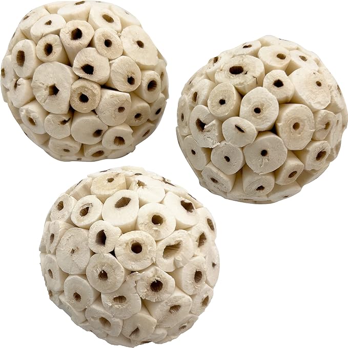 by M&M 5110 Small Sola Bird Balls Pk3 - Handmade Natural Sola Wood Bird Foot Toys, Shreddable Lightweight Wood Balls, Easy for Beaks and Feet to Forage, Grat for Small to Med Birds