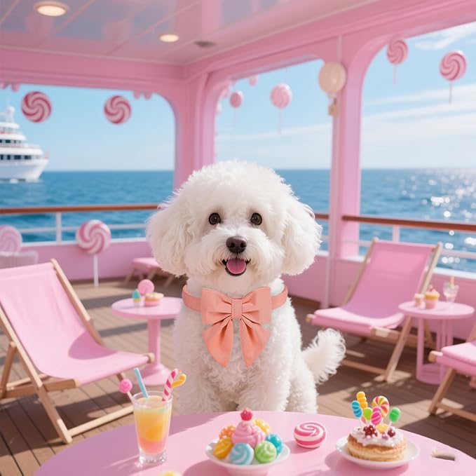 Maca Bates Candy Pink Dog Collar with Cute Solid Sailor Bow Tie for Small Girl Boy Dogs,Girly Adjustbale Durable Breakaway Soft Collars with Bowtie for Female Male Puppy,Pet with Metal Buckle