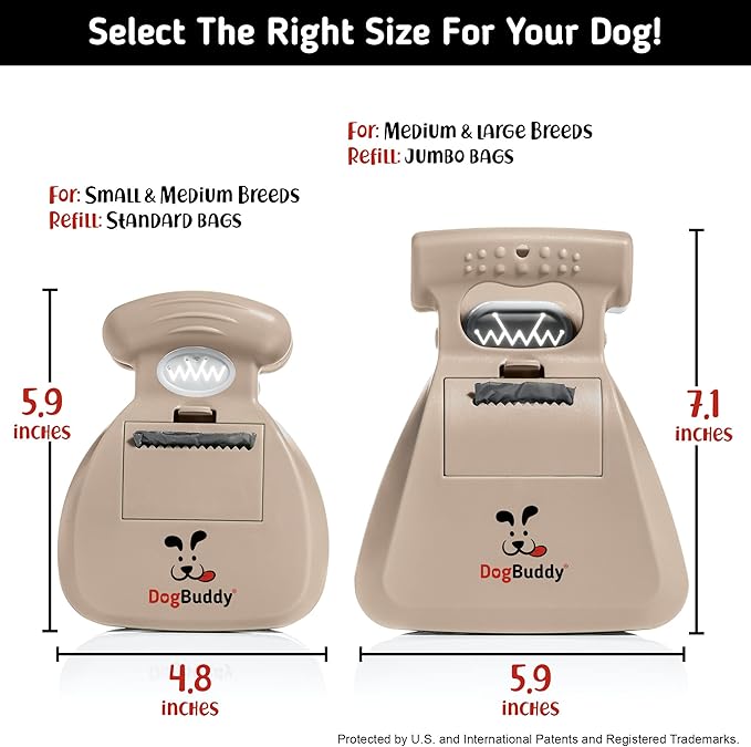 DogBuddy Pooper Scooper, Portable Dog Pooper Scooper, Poop Scooper for Small and Large Dogs, Pooper Scooper with Bag Attachment, Leash Clip and Dog Waste Bags Included (Large, Taupe)