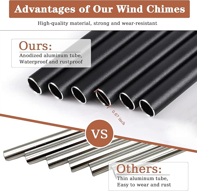 - Premium and Great QualityMaterial: This pet remembrance wind chime has a total height of about 28 inches (from the hook to the bottom of the pendant). It's made of high-quality pine wood and thickened aluminum tube, which is high-quality and wear-resistant. The 6 aluminum tubes, ranging in size from 8.3 inches to 12 inches, are anodized and thickened to prevent corrosion. Each piece is of the highest quality.