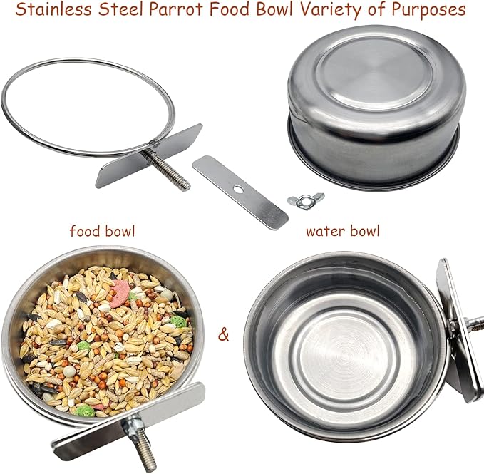Tfwadmx Bird Feeding Dish Cups Parrot Food Bowl Clamp Holder Coop Cup, Bird Cage Water Bowl for Parakeet African Greys Conure Cockatiels Lovebird Budgie Chinchilla
