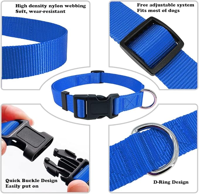 Blue Dog Collar Basic Adjustable Dog Collars for Puppy Small Medium Large Dogs Girls with Breathable Quick Release Nylon Pet Collar