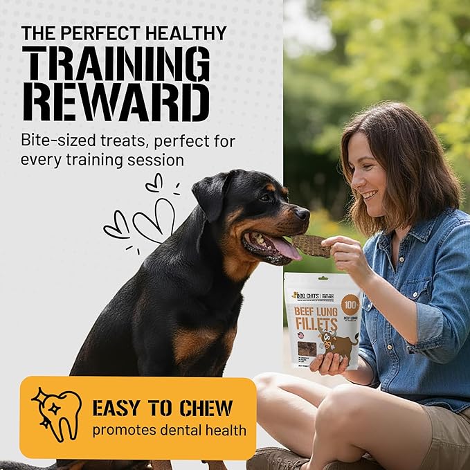 Dog Chits Beef Lung Fillets Dog and Puppy Treats – All Natural Chews for Dogs – Grain-Free, High-Protein, Low Fat Single Ingredient Dog Treat – Ideal for All Dogs – Large, 10 oz – Made in USA