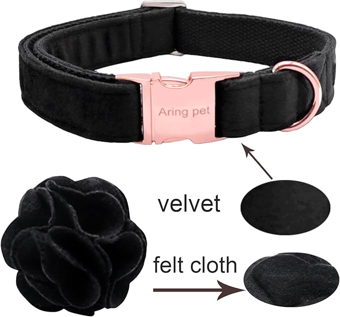 ARING PET Velvet Dog Collars, Black Soft Pet Collar with Detachable Felt Flower Metal Buckle for Puppy Small Medium Large Boy Girl Dogs-L