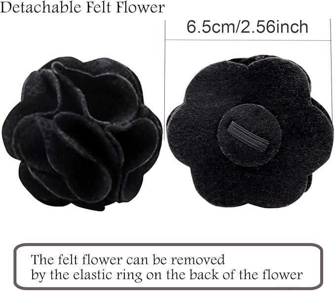 ARING PET Velvet Dog Collars, Black Soft Pet Collar with Detachable Felt Flower Metal Buckle for Puppy Small Medium Large Boy Girl Dogs-XS
