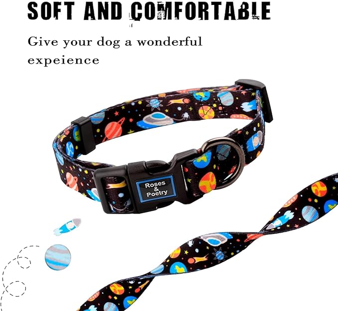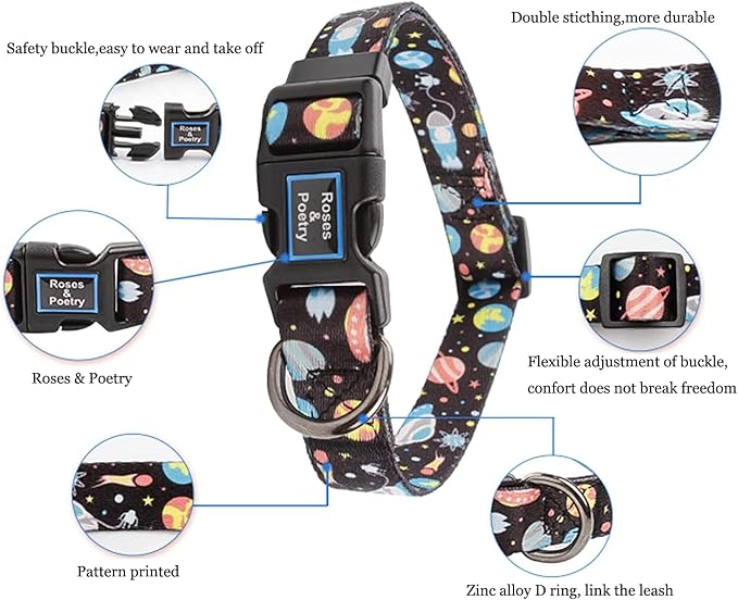 Roses&Poetry Dog Collar with Colourful Star Patterns, Adjustable Durable Puppy Collars for Small Medium Large Dogs (Star-XS)