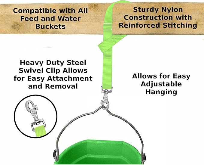 Rosemarie Horse Bucket Strap Hangers,Horse Suppliers Adjustable Nylon Straps up to 700 lbs for Hay Nets, Water Buckets,Hanging-Pratical and Easy Use(4 Pack) (Green)
