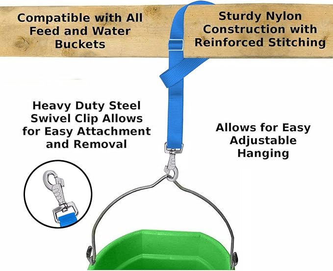 Rosemarie Horse Bucket Strap Hangers,Horse Suppliers Adjustable Nylon Straps up to 700 lbs for Hay Nets, Water Buckets,Hanging-Pratical and Easy Use(4 Pack) (Blue)