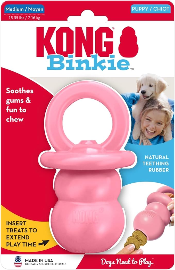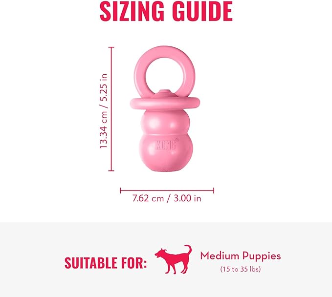KONG Puppy Binkie - Pacifier Dog Toy for Puppies - Stuffable Treat Chew Toy for Treats - Durable Natural Rubber for Teething Puppy - for Medium Puppies - Pink