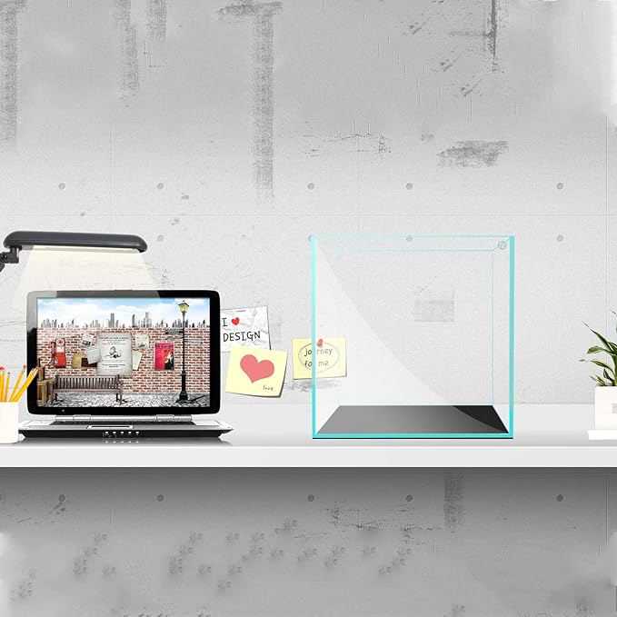 Fzone 7 Gal Rimless Low Iron Fish Tank Nova Clear Ultra-White 45° Mitered Edges Translucent Glass Anata Series Aquarium w/Black Foam Leveling Mat(S30C)