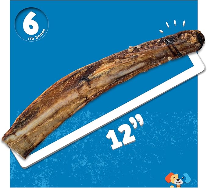 Jack&Pup 12" Rib Bones for Dogs, All Natural Dog Beef Bones, Single Ingredient Bone Marrow, Real Bone for Dogs (6 Pack)