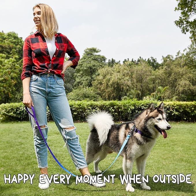 Roses&Poetry Reflective Small Dog Collar and Leash Set, Puppy Collars and Leashes with Gradient Violet, Adjustable Durable Nylon Soft Pet Leash and Collar for Girl and Boy Dogs (Violet-S