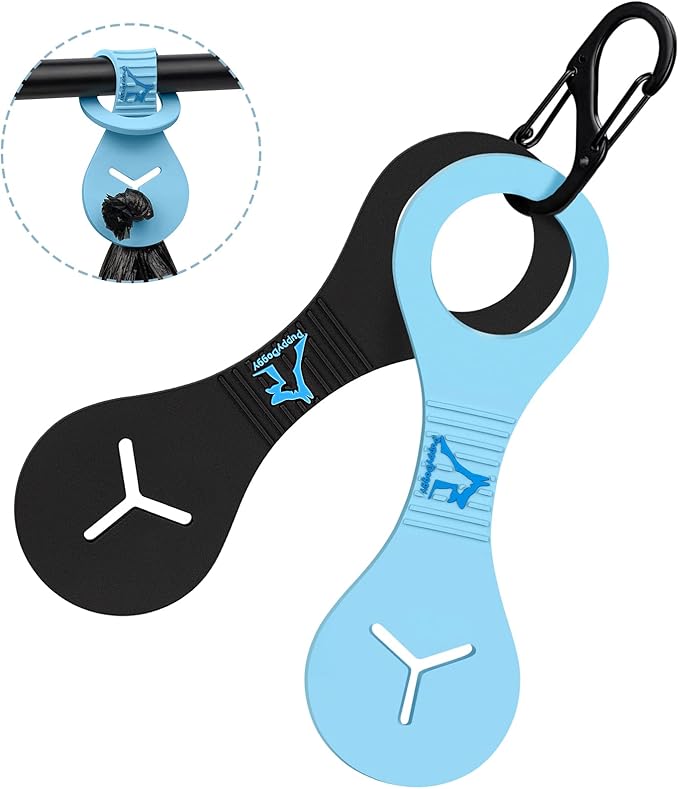 PuppyDoggy Dog Poop Bag Holder for Leash Waste Bag Carrier Dog Poop Bag Dispenser for Walking Running Bicycle Accessory 2 Pieces (Black + Blue)