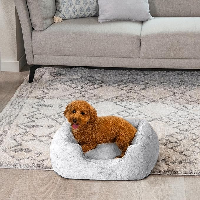 Best Friends by Sheri Lux Lounge Bed Calming Faux Fur Dog Bed, Gray, Small, 20" x 15"