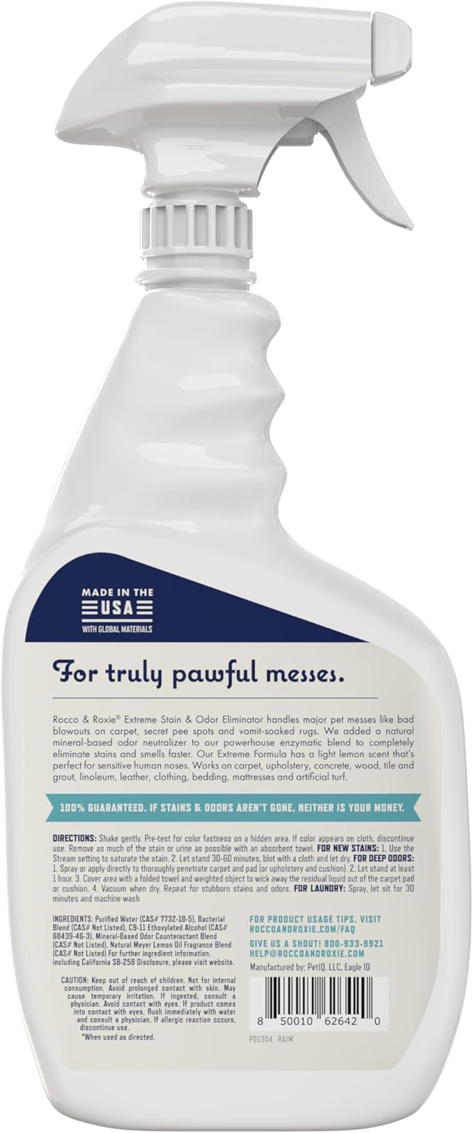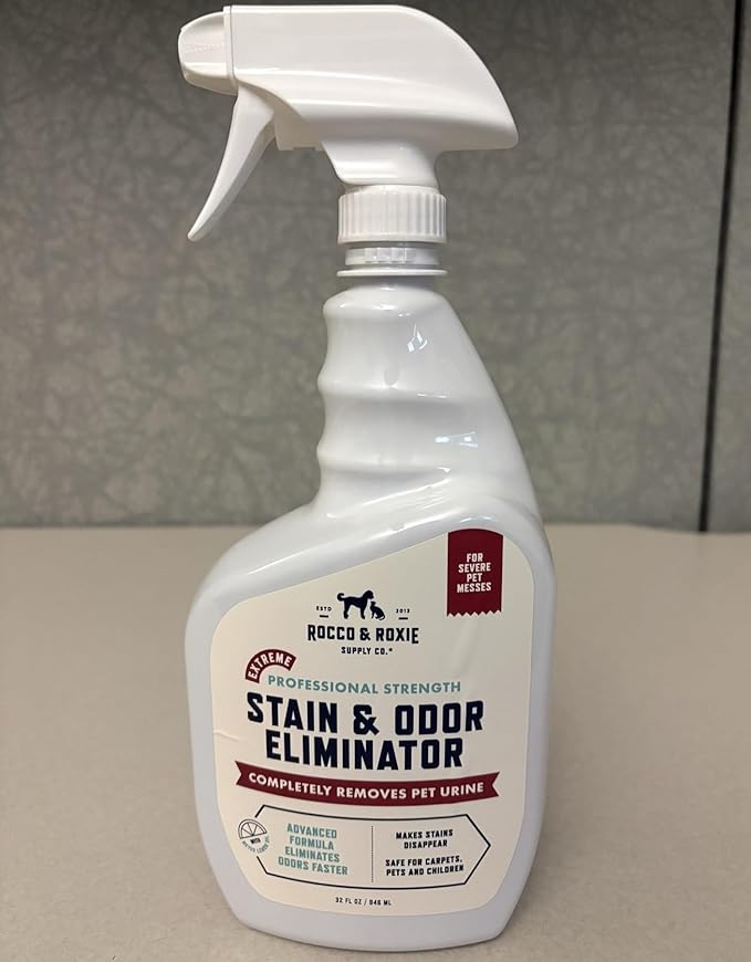 Rocco & Roxie Extreme Stain & Odor Eliminator for Strong Odor, Pet Urine Enzyme Cleaner Destroyer, Stain Remover, Dog Poop and Cat Pee, Enzymatic Carpet Cleaner Spray for Home, Puppy Potty Training