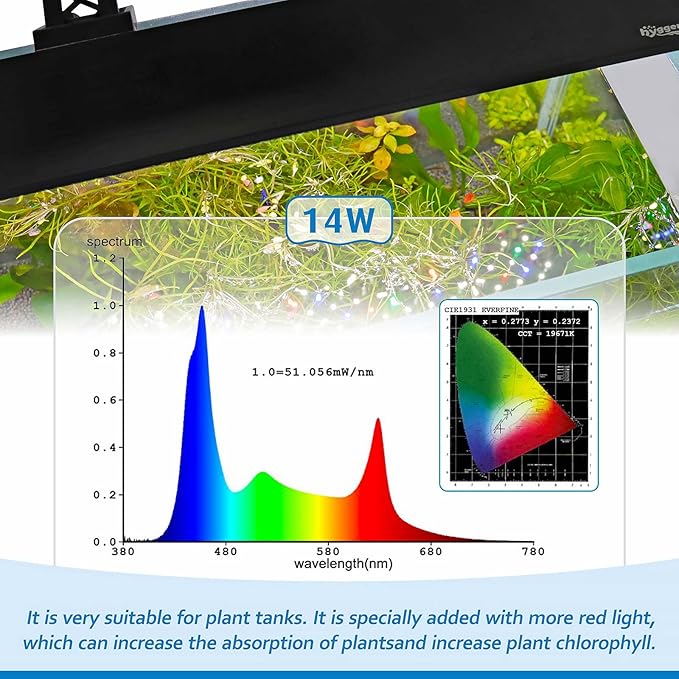 hygger Clip On Full Spectrum Aquarium LED Light, 14W Day-Night Dual Timer Sunrise-Day-Sunset-Moon Fish Tank Light, Adjustable Timer Brightness with 9 Colors for Planted Tank