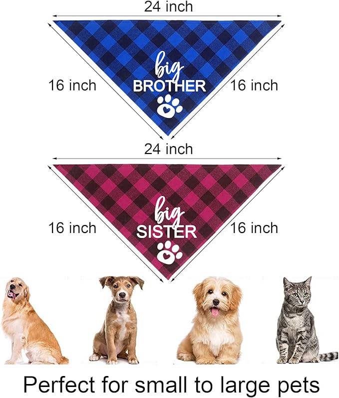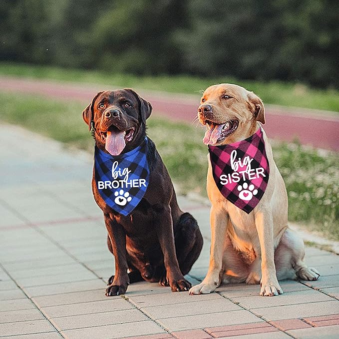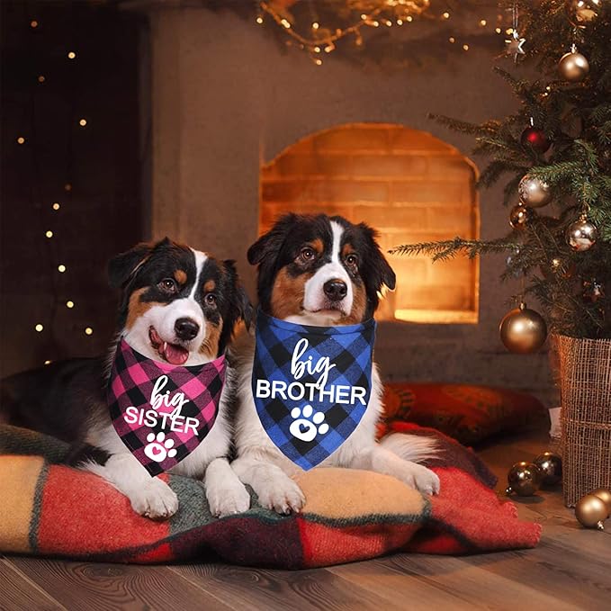 Big Brother Big Sister Dog Bandana, Plaid Pregnancy Announcement Dog Bandanas for Dogs (Blue and Pink, Big Brother and Big Sister)
