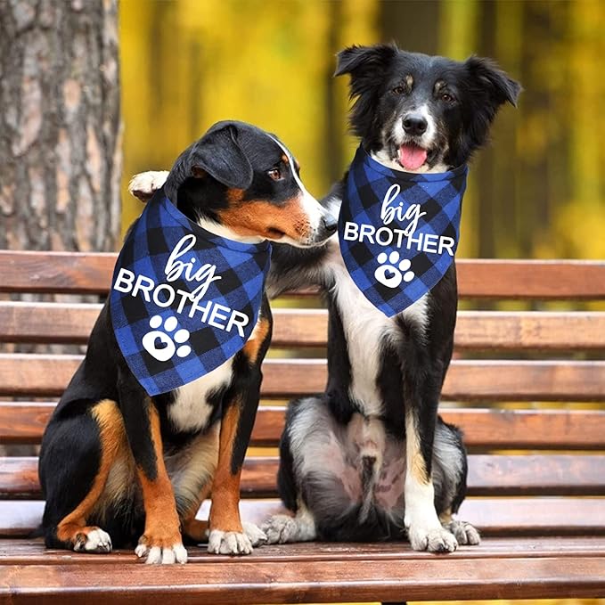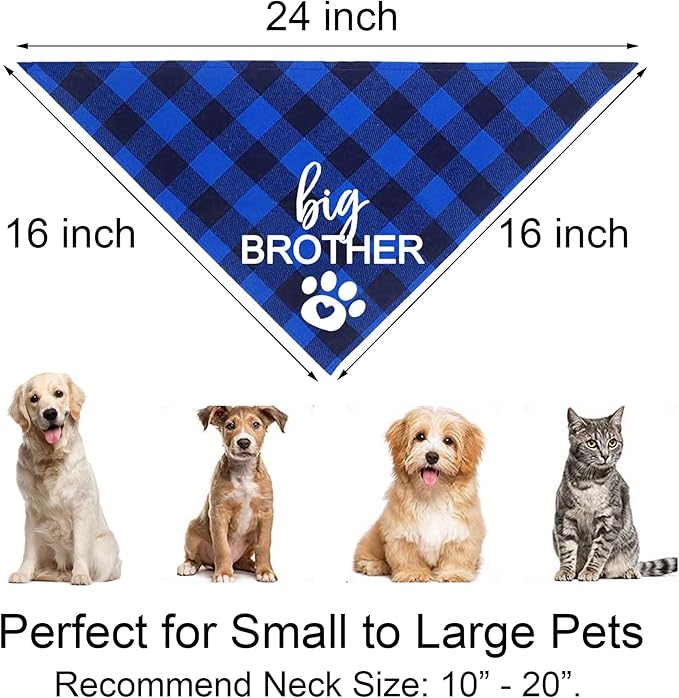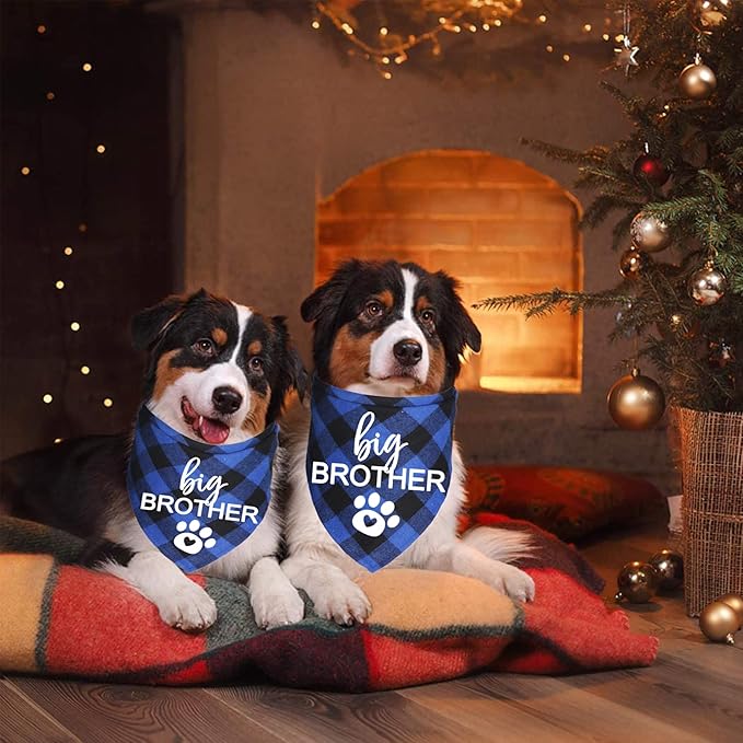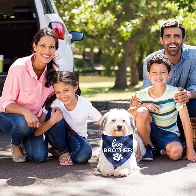 Big Brother Dog Bandana, Plaid Pregnancy Announcement Dog Bandanas for Dogs (Blue, Big Brother)