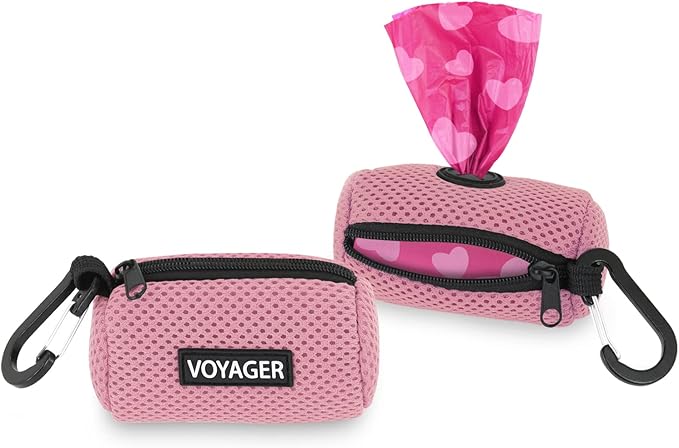 Best Pet Supplies 2-Pack Dog Poop Bag Holder Leash Attachment, Color, Reusable Mesh Dispenser Pouch for Travel, Walking, Park, and Outdoor Use, Soft and Durable with Clip-On - Mesh Pink