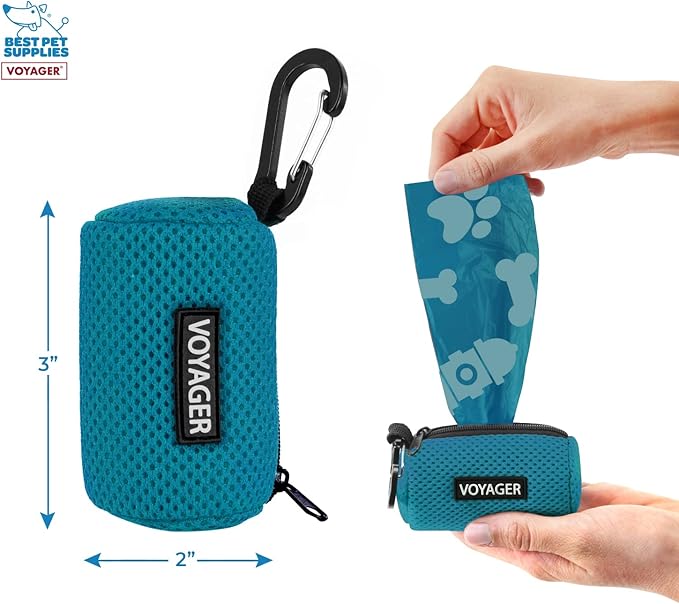 Best Pet Supplies 2-Pack Dog Poop Bag Holder Leash Attachment, Color, Reusable Mesh Dispenser Pouch for Travel, Walking, Park, and Outdoor Use, Soft and Durable with Clip-On - Mesh Turquoise