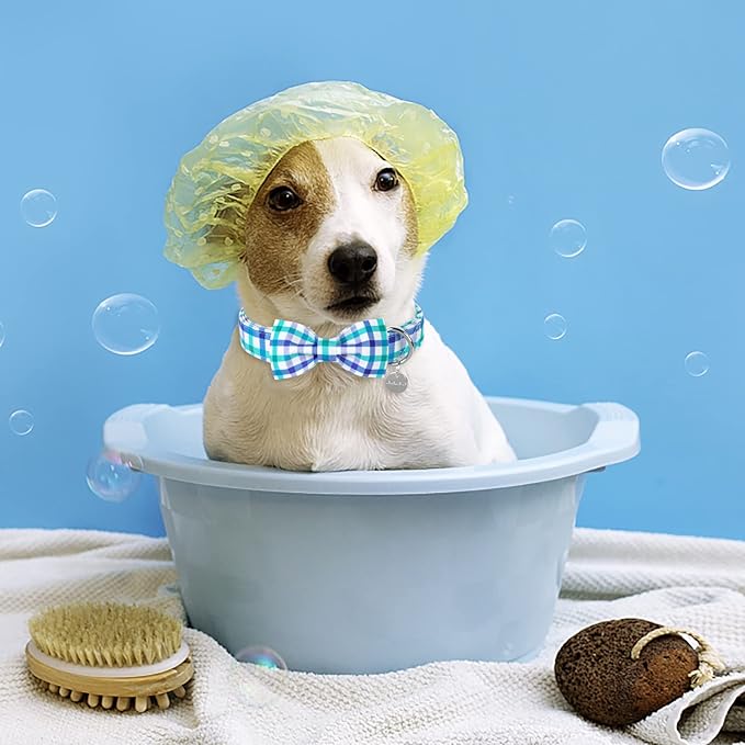 Dog Collar Bow Tie, Comfortable Durable Cotton Bowtie Collar for Large Dogs, Adorable Dog Collar with Metal Buckle, Blue Grid, L, Neck 16-24in