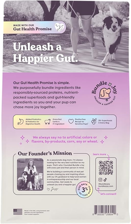 - FOR ALL ADULT BREEDS AND SIZES: Bundle x Joy dog food has omega fatty acids to support healthy skin and a shiny coat and probiotics to support digestion. The kibble pieces are small enough for small breed dogs to enjoy.