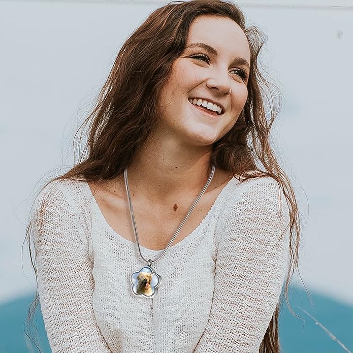 - 【Witness Of Deep Love - Personalized Pet Ashes Necklace】You can customize a photo of your beloved pet, the front is an image, and the back can customize a commemorative quote, date, or name, such as "Not in my life, but forever in my heart". Each pet urn necklace for ashes is like a precious memory of time, engraved with eternal companionship and love,accompanying you forever