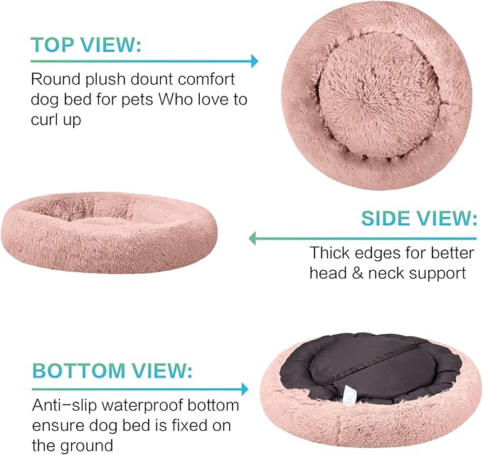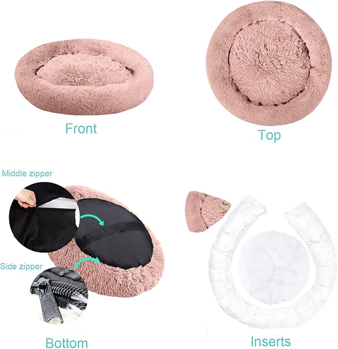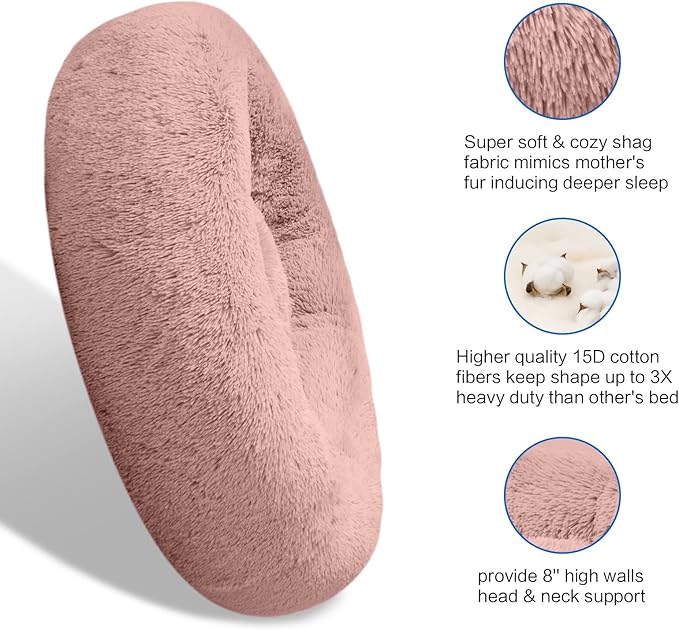 SAVFOX Plush Calming Dog & Cat Beds - Donut Shaped, Comfy Cuddler in Faux Fur, Washable, Multiple Sizes XS-XXL