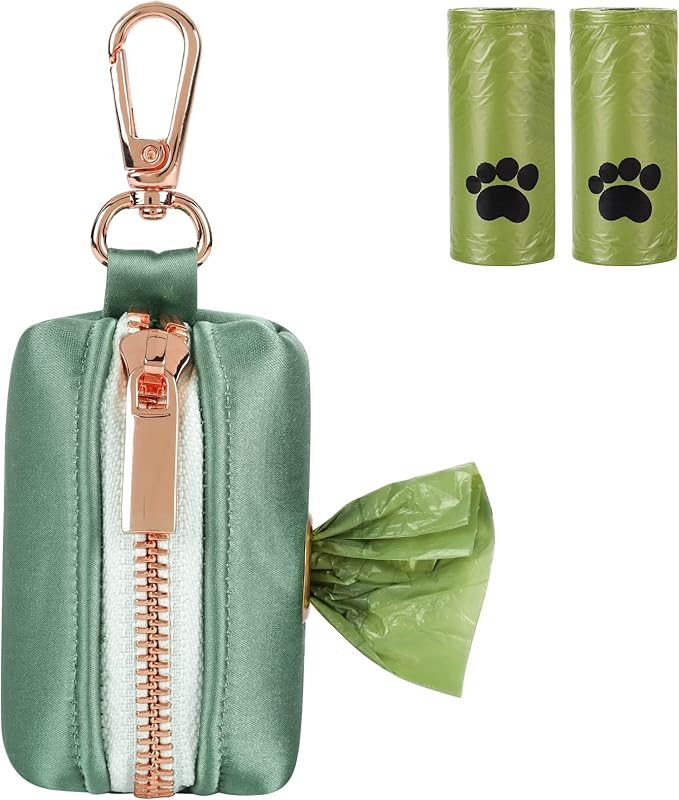 Lionet Paws Cute Poop Bag Holder with Bag for Leash, Silk Dog Dispenser, Matching Collar