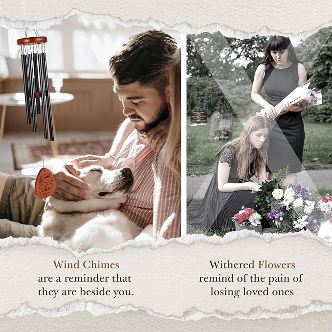 - 【Pet Memorial Gifts 】Each wind chime comes securely packaged in a gift box with pet-themed designs and the chime tubes wrapped in protective sponge. Along with the wind chime, we include a Condolence Card with a blank back for your personal message. This heartfelt gift is a thoughtful expression of sympathy and comfort for the loss of a dog.
