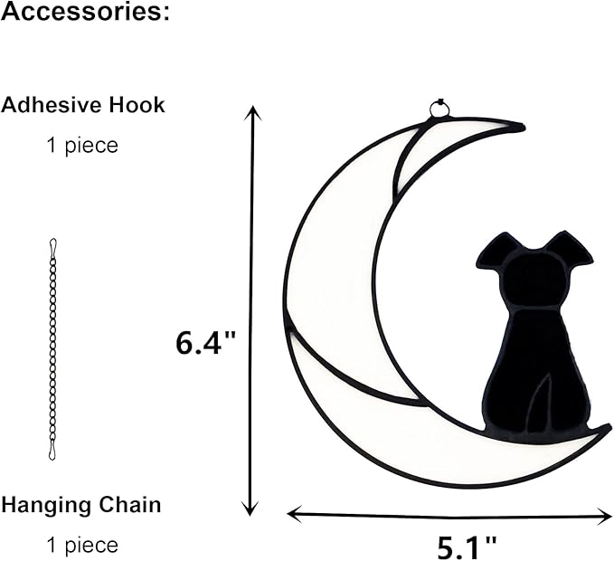 Stained Glass Pet Dog Memorial Gifts for Dog Lovers, Black Dog Decor on White Moon Window Hangings Suncatcher, Loss of Dog Sympathy Gift, Pet Loss Remembrance Gifts in Memory of Dog