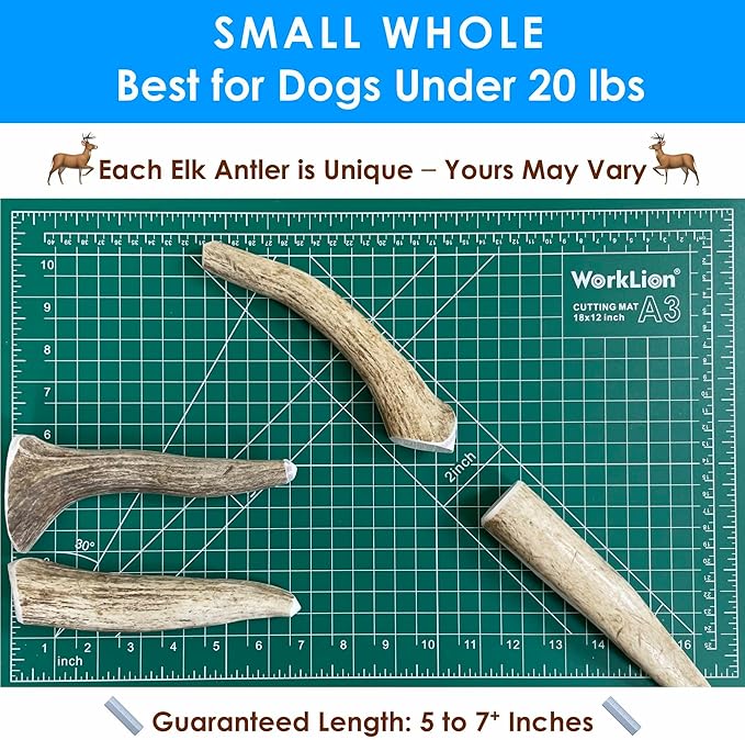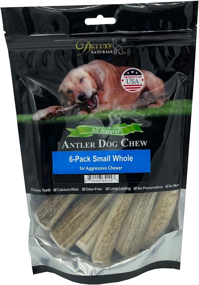 6-Pack Small Whole Elk Antler Dog Chews (5 to 7+ in) – Long Lasting Natural Dog Chew Bones for Small Dogs Under 20 lbs, Aggressive Chewers, Teeth Cleaning, No Rawhide