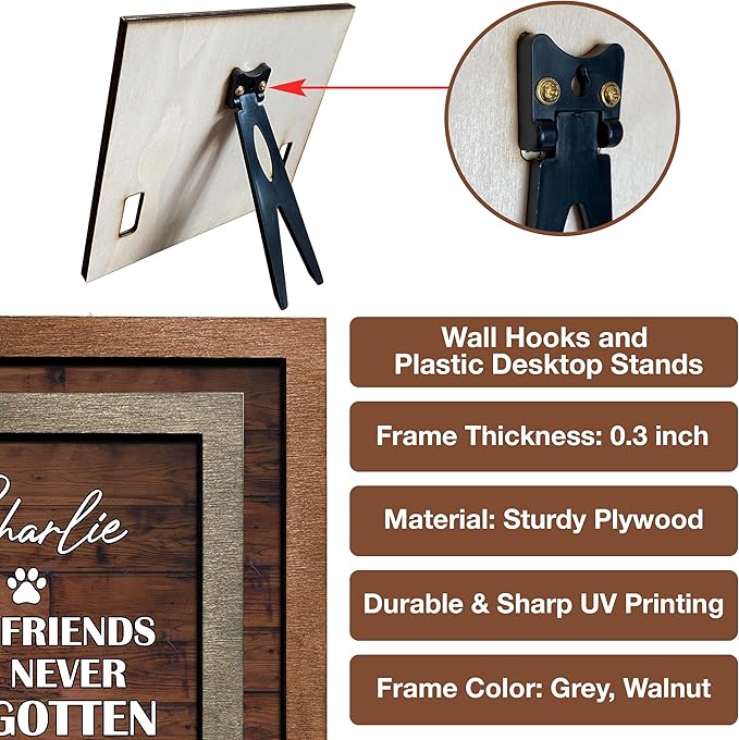 - ITEM DIMENSIONS: Our customized pet loss sign comes in two sizes, 8x8" and 8.7x10.6," and serves a variety of purposes. Additionally, you may use a personalized pet memorial frame as a table decoration or as a part of your home decor by placing it on a shelf, mantle, table, or wall. It will be a lovely pet memorial piece.