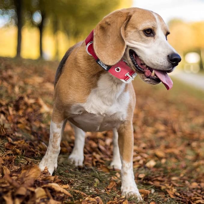 TSPRO Tactical Dog Collar 1.25 Inch Wide Thick Dog Collars with Heavy Duty Metal Buckle, Durable, Strong, Adjustable for Small Dogs (Red S)